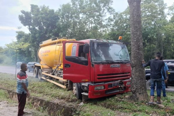 Pohon depan Mal Slipi Jaya tumbang setelah dihantam truk molen, menyebabkan gangguan lalu lintas dan kerusakan properti di sekitar lokasi kejadian.